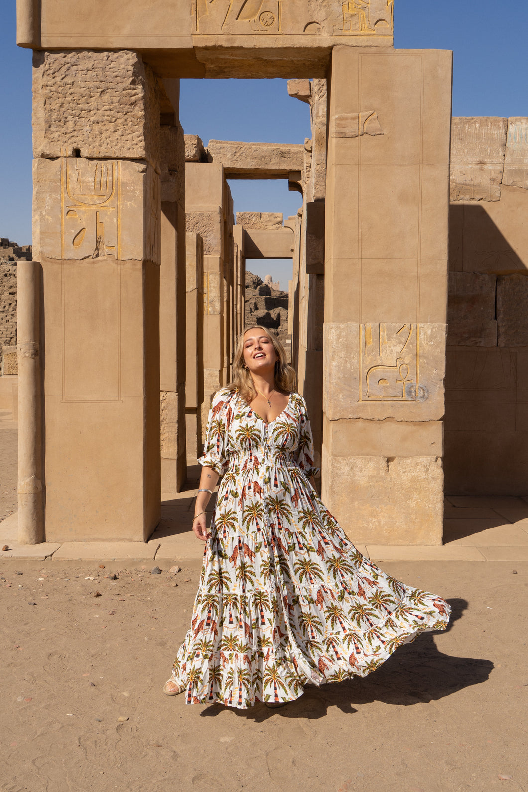 Our best selling Fortune Teller Maxidress by Eclectic Bohemian in a short sleeve version has been replicated in our new jungle print. The modern bohemian style Maxidress is an absolute favourite for all shaped bodies! She knows how to hug your curves and shape your body to look like a goddess! Balloon sleeves to elbow length, low v-neck with elasticated neckline to allow the shoulders to be worn on or off. Made from our usual super soft rayon viscose, exclusive new digitally printed jungle fabric, with an off-white background, palm trees, cheetahs and toucans in variations of rust, brown & green tones. Buttons all the way down the front, that can unbutton completely if you’d like to wear it as a kimono/duster. There is a soft shirred wide elastic waistband, with 3 tiers in the full style skirt with matching coloured ladder lace trim. Can be worn as maternity dress due to wide elastic and perfect for breast feeding with the elasticated neckline🌸